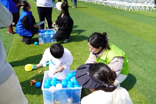 (开云官方党员志愿者与星孩们共同参与游艺活动)